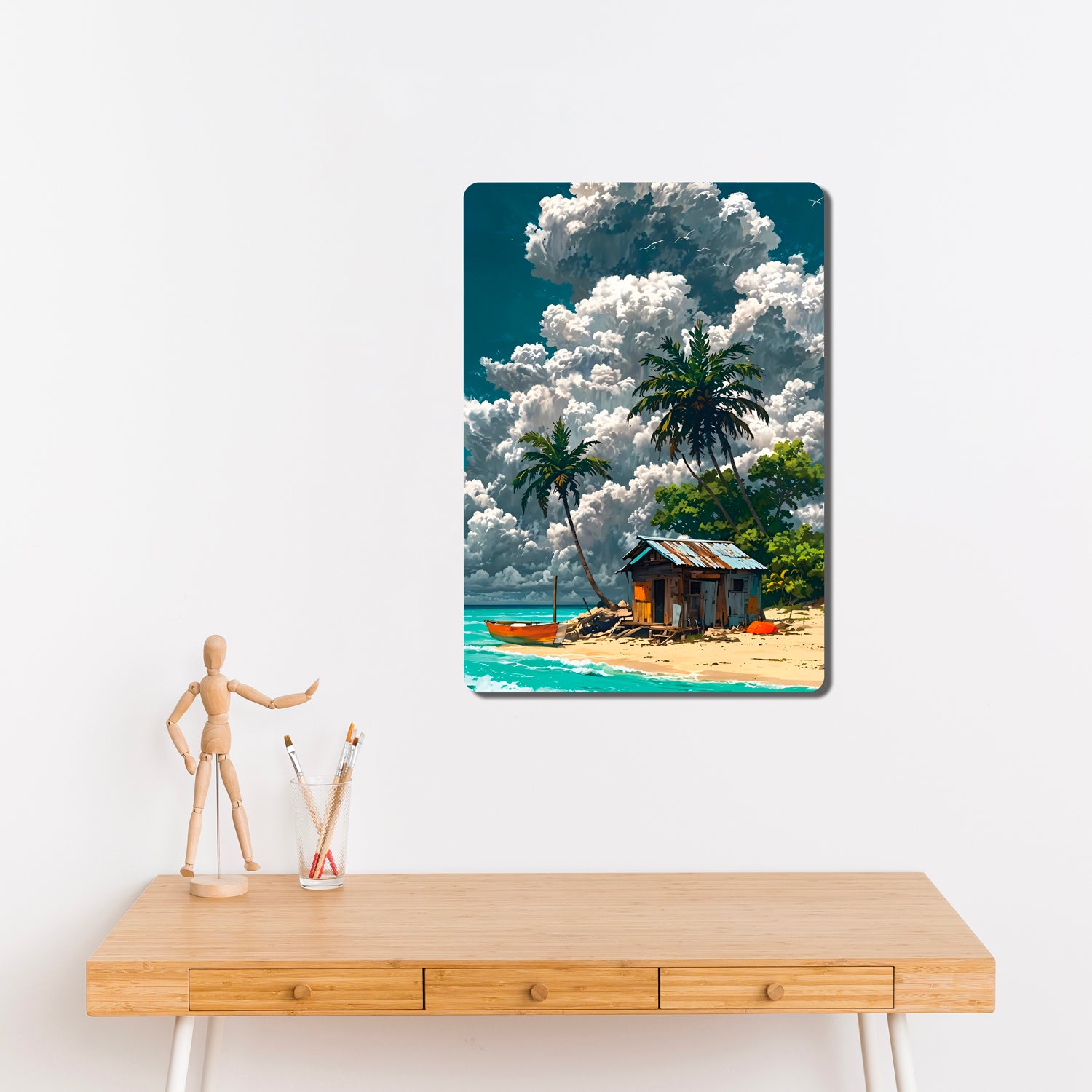 Bring your space to life with the "Shanty Atoll". A sleek, high-definition design printed on durable mild steel. Perfectly sized from A4 to A1, adding a modern edge and timeless character to any wall.