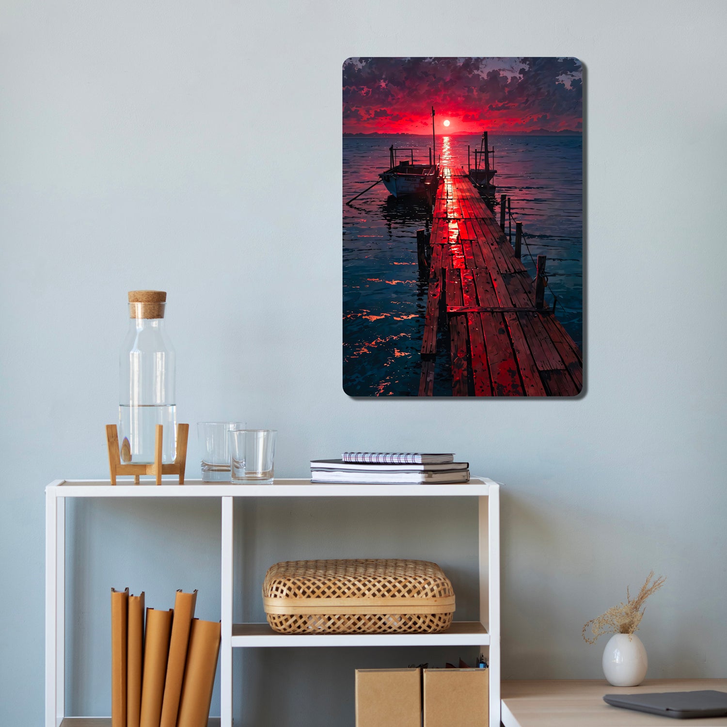Bring your space to life with the "Sunset Dock". A sleek, high-definition design printed on durable mild steel. Perfectly sized from A4 to A1, adding a modern edge and timeless character to any wall.