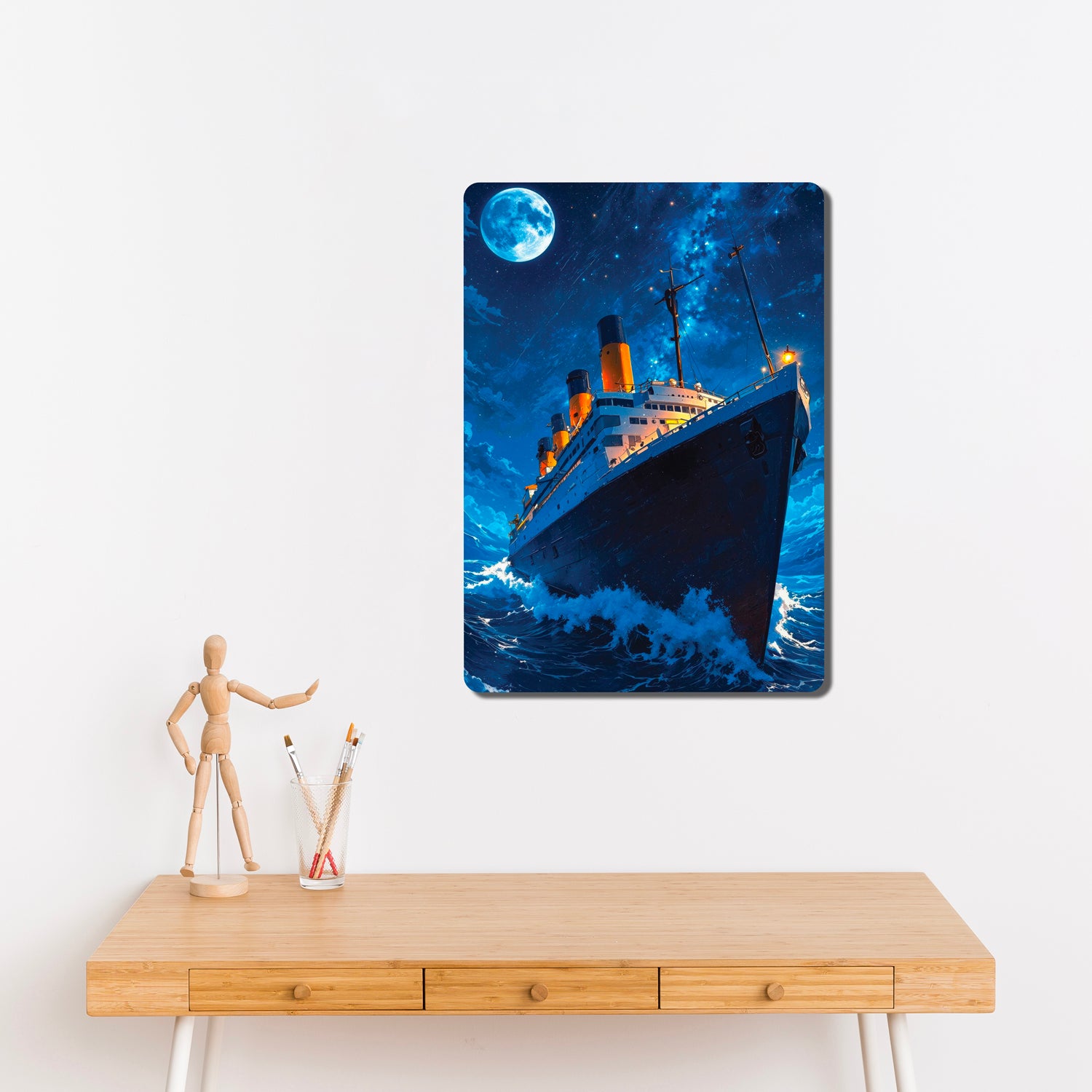 Bring your space to life with the "Titanic". A sleek, high-definition design printed on durable mild steel. Perfectly sized from A4 to A1, adding a modern edge and timeless character to any wall.